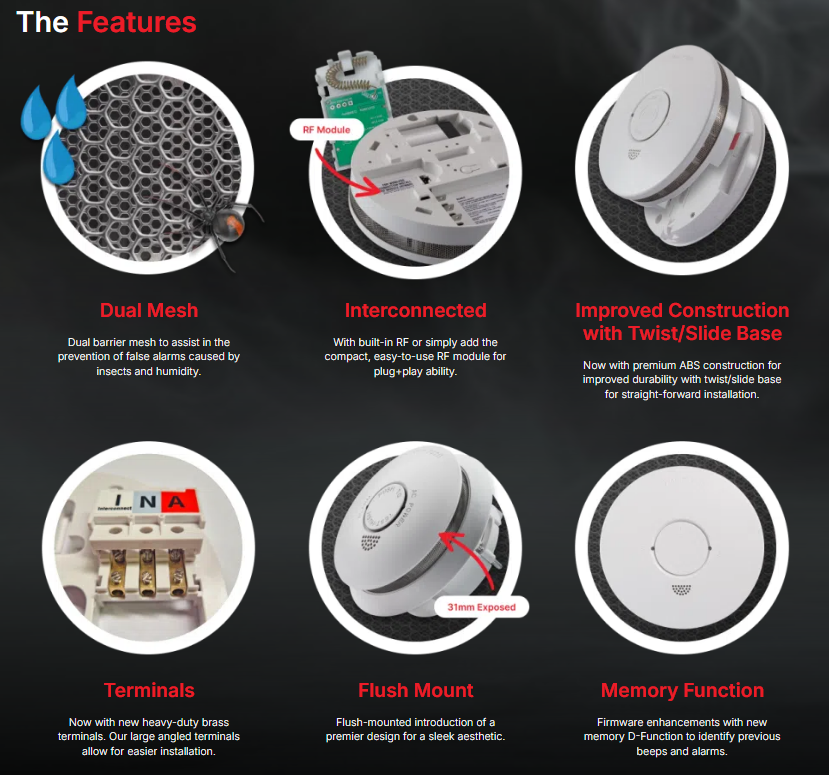 Dual barrier mesh being the main feature to help prevent false alarms caused by insects and humidity, backed by a 10 year warranty and reliable technical support to get the job done right and not having yourself return to site to fix false alarms.